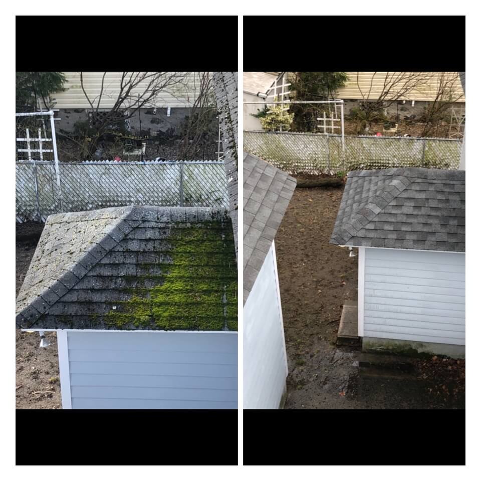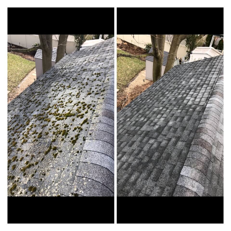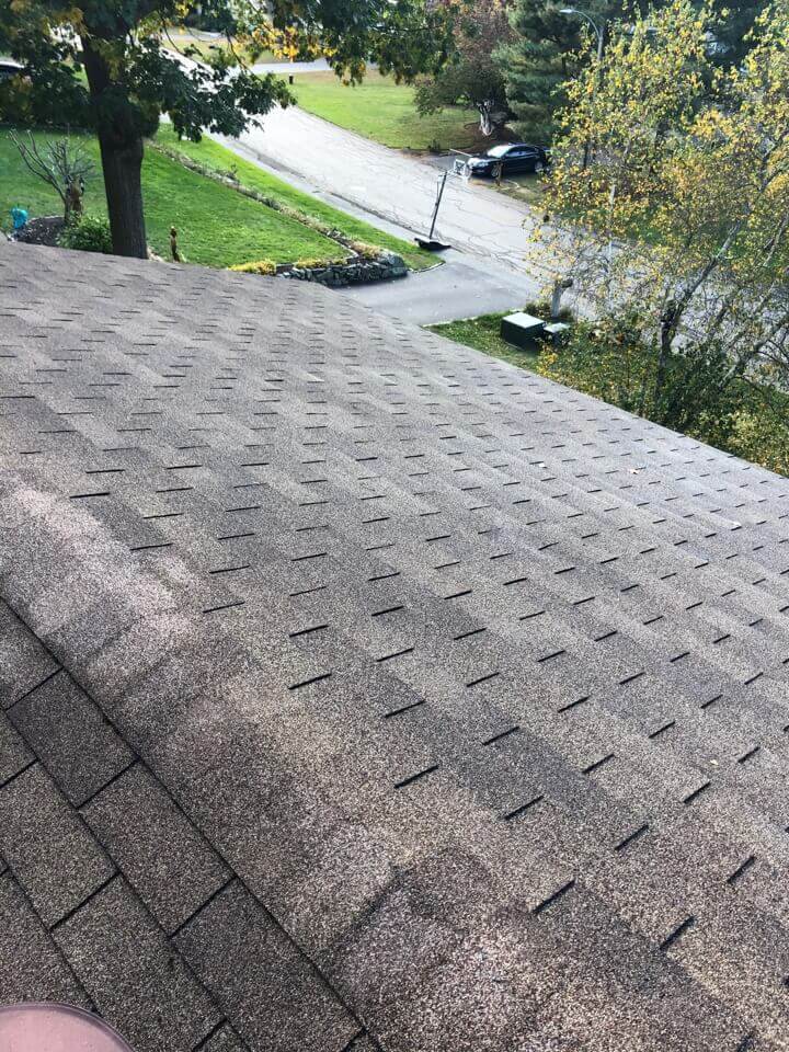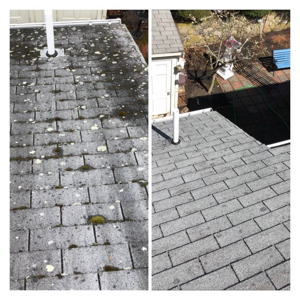 HiCleaners is the most experienced company in Hamilton, MA that deals with roof washing and roof soft washing. All of our employees are trained to recognize precise solution mixing ratios to provide you with the safest and most effective soft washing service. Roofs are a commonly neglected part of a house due to the fact that most people don’t have ladders to access it, so it is very easy to just leave it alone and forget about problems that may start to arise. Just like many home owners, discoloration and small bits of moss on a roof can be overlooked because of the misconception that it is just aesthetic. However, it isn’t just aesthetic, the moss slowly lifts the granules off the shingles which in turn shorten the life of the shingle. The moss also spreads, just like any bacteria if it is left alone for too long, it can quickly become a problem that spirals out of control. Call HiCleaners for a free quote, we only use the most advanced eco-friendly solutions and equipment to make sure the job is done right, for the safety of the employees, your plants, grass, pets, and children.